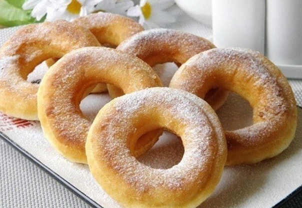 Пончики на кефире за 15 минут?Рецепт пригодится каждой хозяйке ?Ингредиенты:Показать полностью…?Кефир (самоквас) — 200 млСахар — 4 ст. л.Яйцо — 1 ШтукаВанилин — 1 щепоткаСливочное масло — 50 гМука пшеничная высшего сорта — 400–450 гРазрыхлитель — 1 ч. л.Растительное масло рафинированное — для жарки?Приготовление:?1. Подготовьте продукты для пончиков. Сливочное масло заранее достаньте из холодильника, чтобы оно было теплым. Смешайте масло с яйцом и сахаром до однородного состояния.2. Добавьте кефир, перемешайте снова.3. Всыпьте муку, смешанную с ванилином и разрыхлителем. Замесите тесто. Не стоит тесто делать слишком крутым, иначе пончики будут жесткими. Как только тесто перестало липнуть к рукам, значит, что муки достаточно.4. Присыпьте стол мукой. Сразу поставьте сковородку с маслом нагреваться. Тесто раскатайте толщиной примерно в 1 см. С помощью двух стаканов разного диаметра сделайте пончики.5. В горячее масло выкладывайте пончики, обжаривайте их с двух сторон до румяного цвета.6. Готовые пончики снимите со сковороды, бумажными салфетками удалите излишки жира. Остудите пончики, и можно подавать к столу.?Приятного Чаепития! Угощайтесь! Вкусно! ...